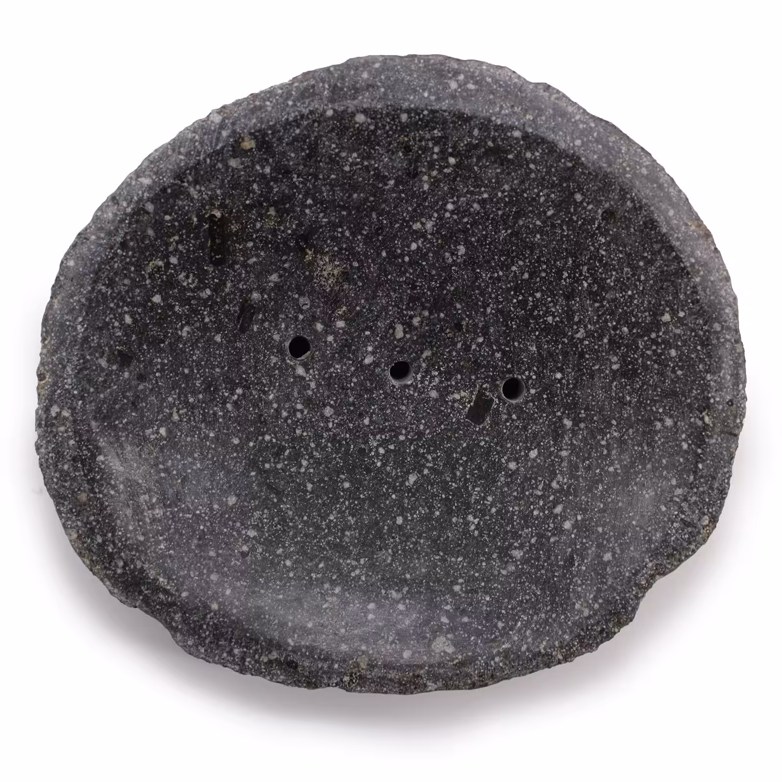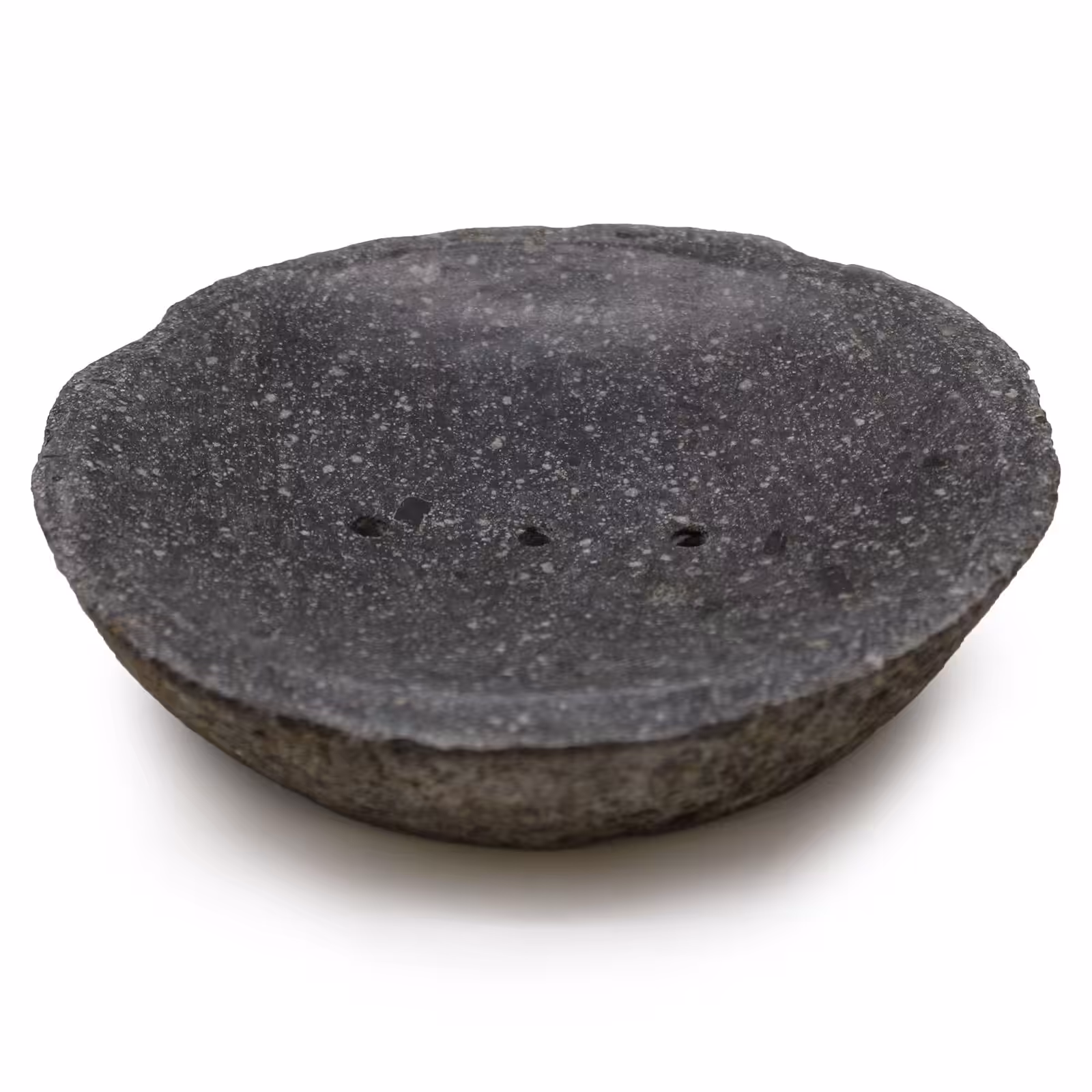 The soap dish is handcrafted from river stone and has raw, untouched edges, which makes it a unique, authentic product. The dish is polished and has holes through which water can drain. It will work in every bathroom or kitchen.