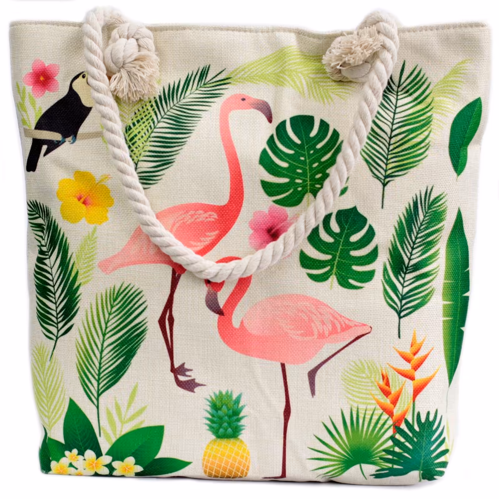 Take a look at this beautiful woven style featured in Flamingo & Tropical leaves Design Beach Tote Bags in vintage Green, Pink and beige colours from Artisan Gifts.Zip and inside pockets help keep you organized, while comfy rope handles make carrying a breeze.It is a tough canvas tote designed with plenty of space to stow…