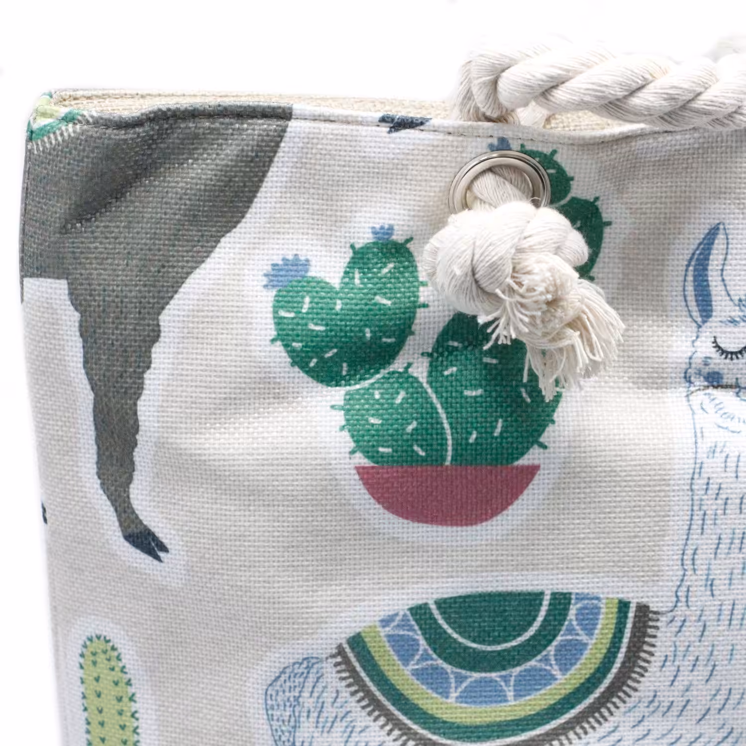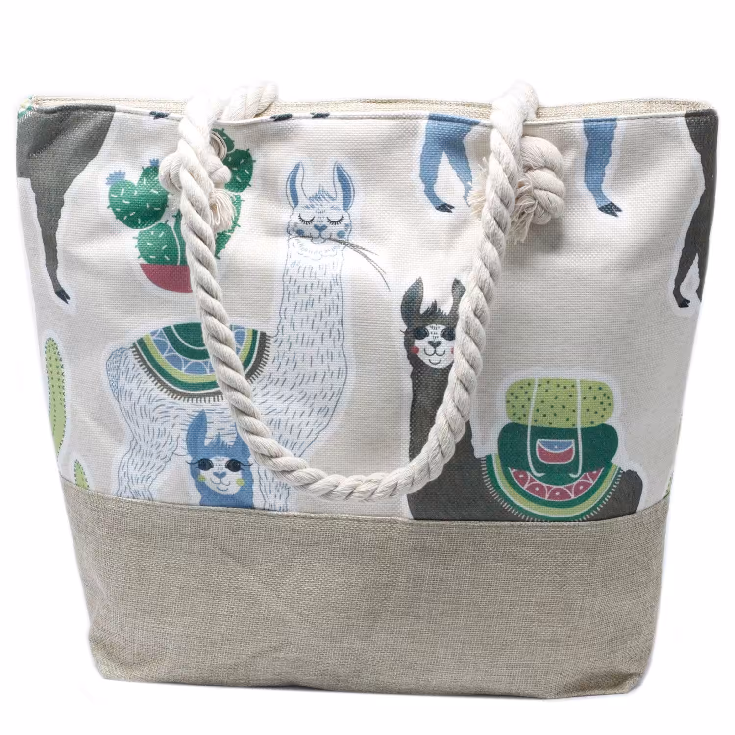 Take a look at this beautiful woven style Beach Tote Bag in vintage Green and beige colours featuring lovely and very treading llamas from Artisan Gifts.