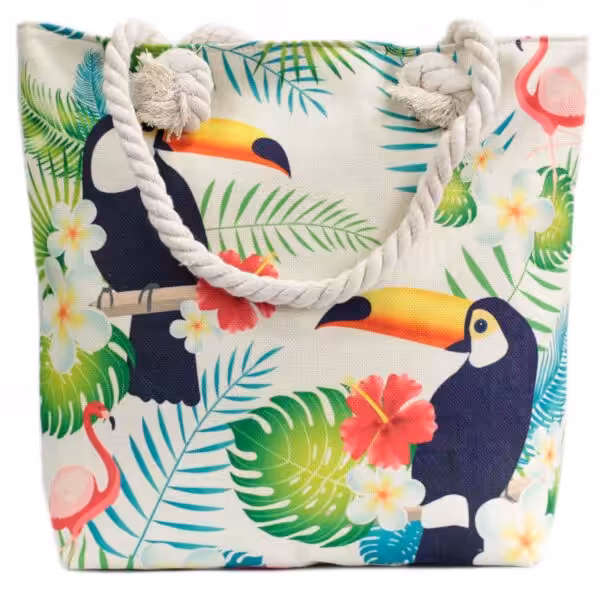Take a look at this beautiful woven style have a Tropical Toucan Design Beach Tote Bags in vintage Green and beige colours from Artisan Gifts.