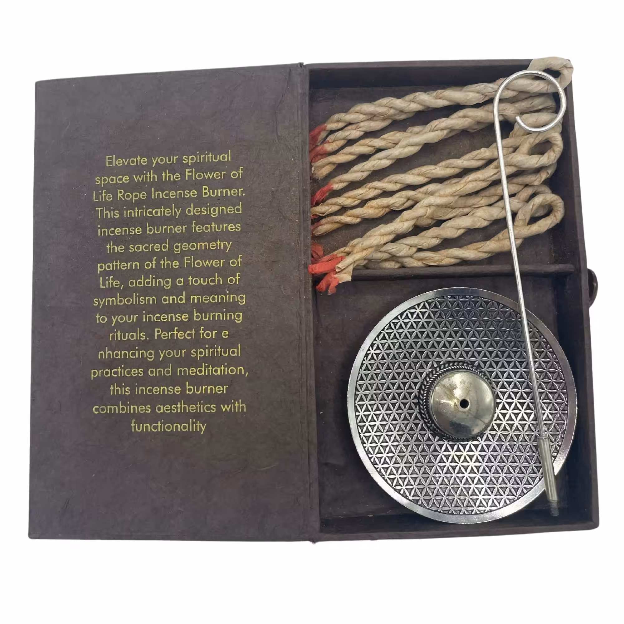 Our Rope Incense and Silver Plated Holder Set – Flower of Life is designed to meet your retail needs. Whether you run a boutique, a yoga studioor a holistic store, this set brings a touch of elegance and spiritual depth to your product offerings.