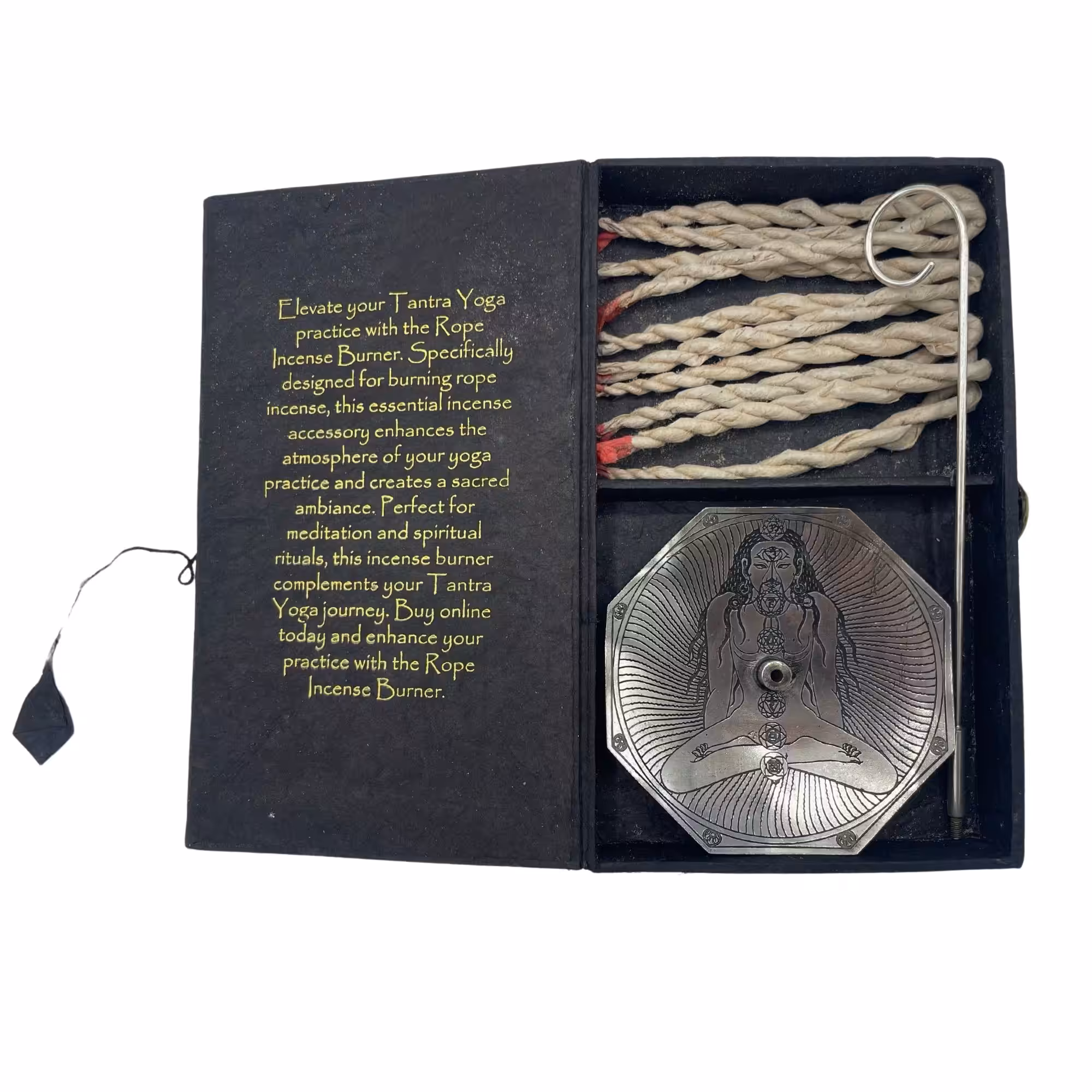 Our Rope Incense and Silver Plated Holder Set – Tantra Yoga is designed for retailers looking to offer their customers a unique blend of aesthetics and spirituality. Whether you run a boutique, a yoga studioor a holistic shop, this set is a valuable addition to your product line-up.