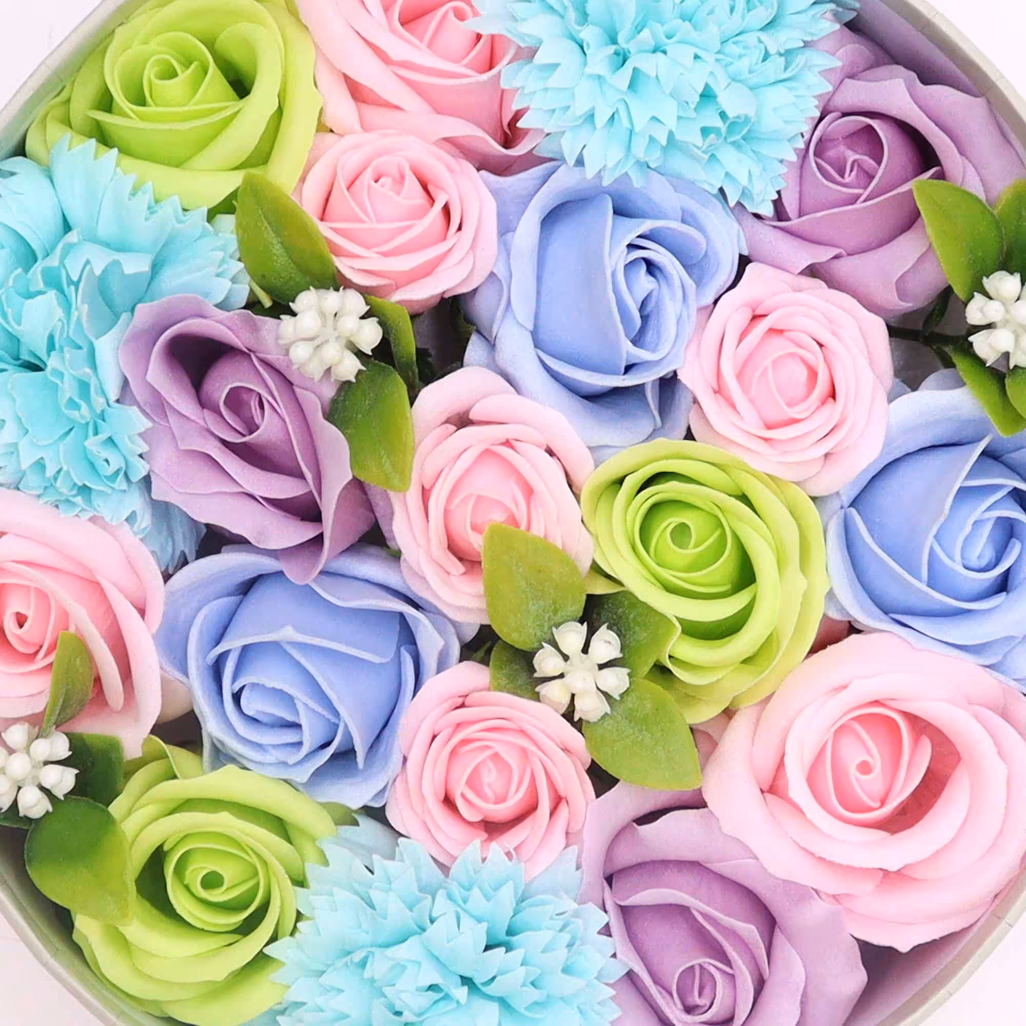 Celebrate the joy of new life and blessings with a Soap Flower Gift Round Box in a delightful shade of blues. This charming gift set is not just a treat for the eyes but also a thoughtful way to convey your warm wishes to new parents.
