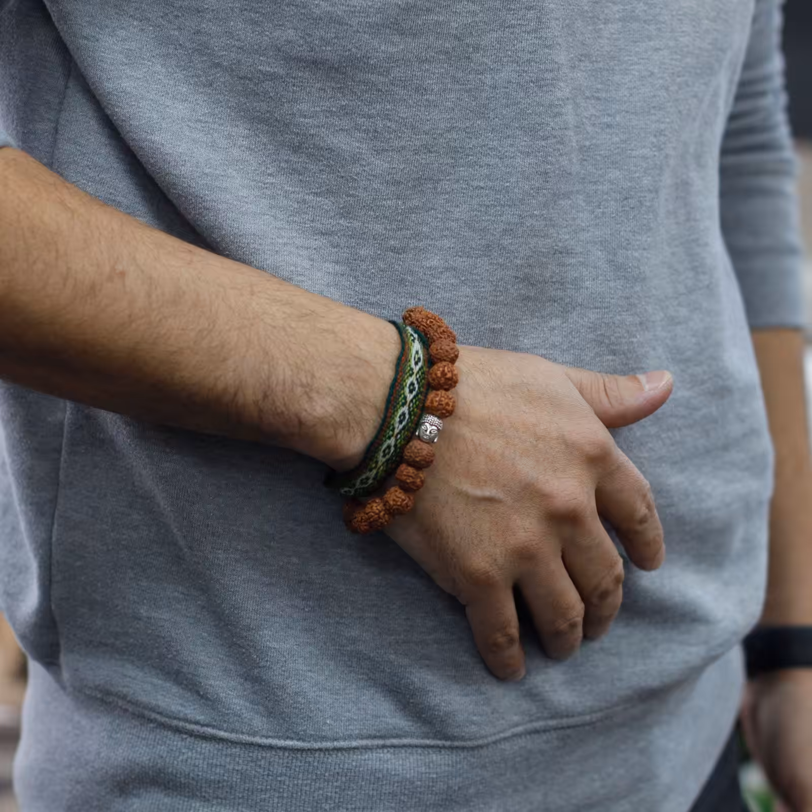 Rudraksha Buddah Bangle Mala – Brown.Contains 20 beads.