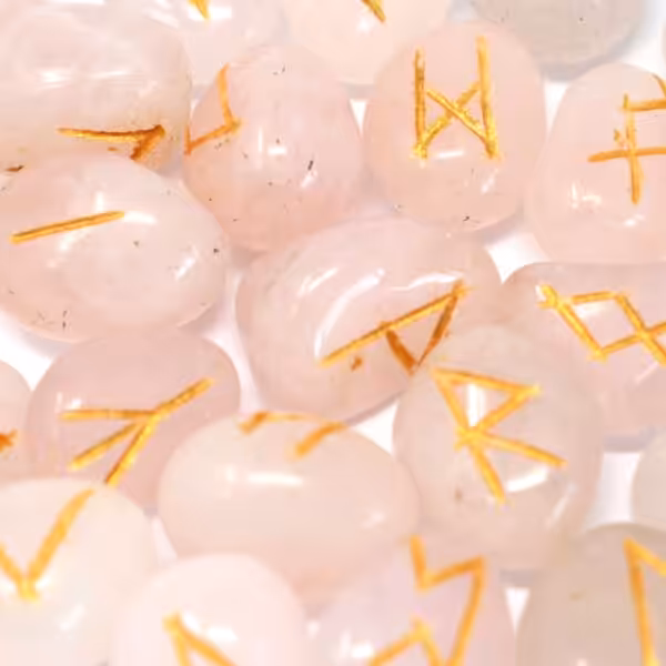 Rose Quartz Runes in Pouch.