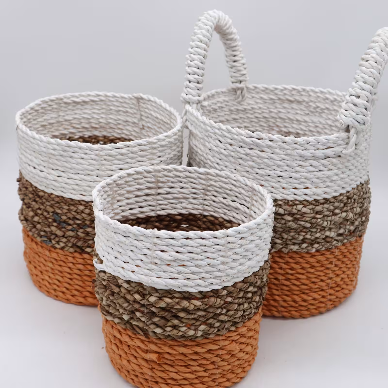 Seagrass Basket Set – Orange / Natural / White is perfect for displaying your products, multi-functional baskets are handwoven and add a genuine earthy look to any space.