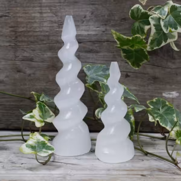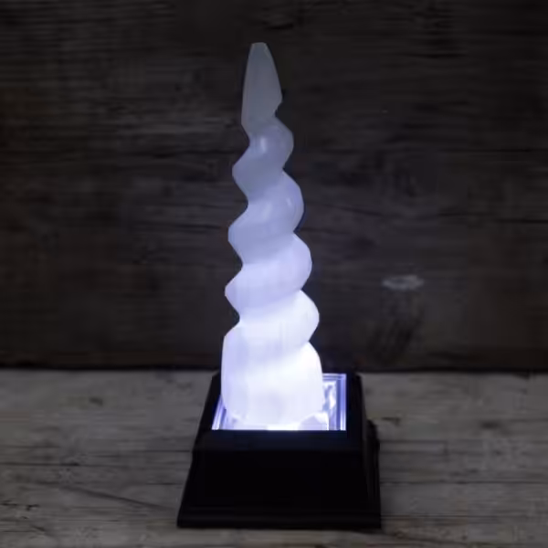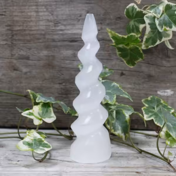 Selenite Spiral Unicorn Horn Tower – 15 cm
