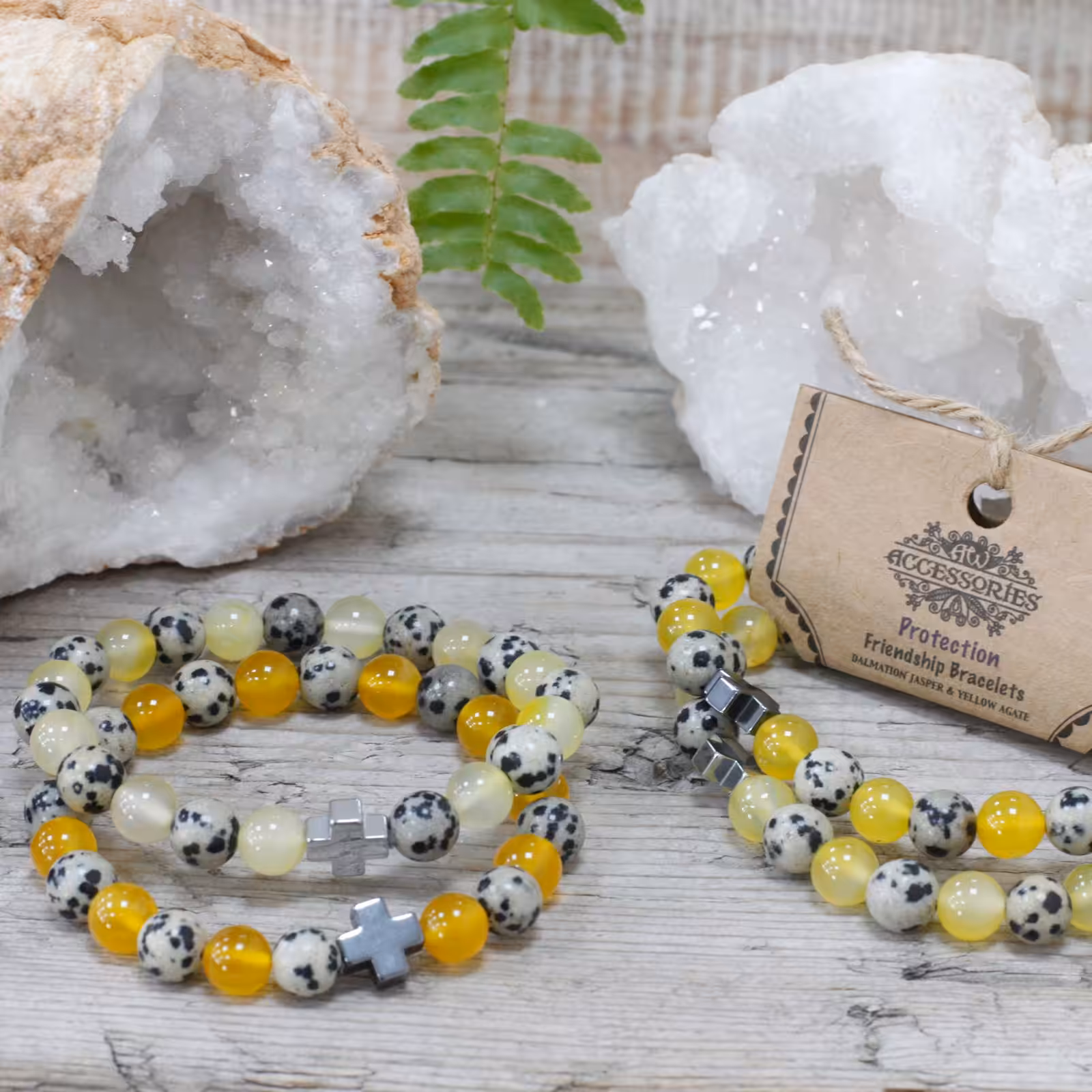 Gemstones Friendship Bracelets – Dalmation Jasper & Yellow Agate