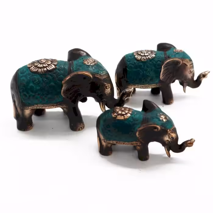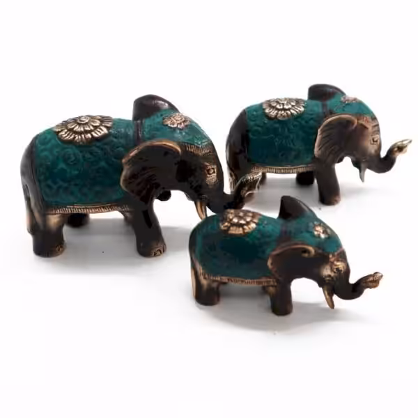 Sizes of the elephants :B: Height 5.5cm, Length 9cm, Width 3cm, Weight 210gM: Height 4.5cm, Length 8cm, Width 2.5cm, Weight 117g S: Height 4cm, Length 6.5cm, Width 2cm, Weight 86g