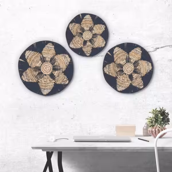 Add bohemian, laid-back touch to any room with this Set of Three Seagrass Bowls Wall Art – Black. Handmade by Indonesian artisans.