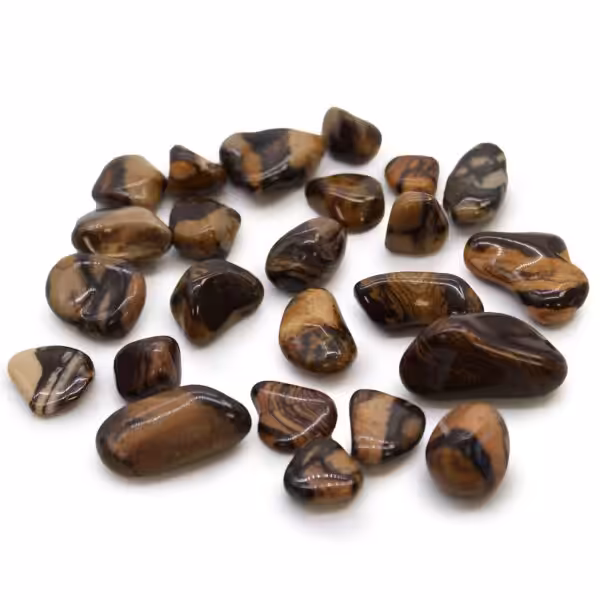 Picture Nguni is jasper with stripes and patterns that resemble the colour of the South African Nguni cattle. The stone contains various minerals that give it this wonderful look. It has earthy shades of brown, yellow, red and gray. A very interesting stone, especially when you look at it closely.