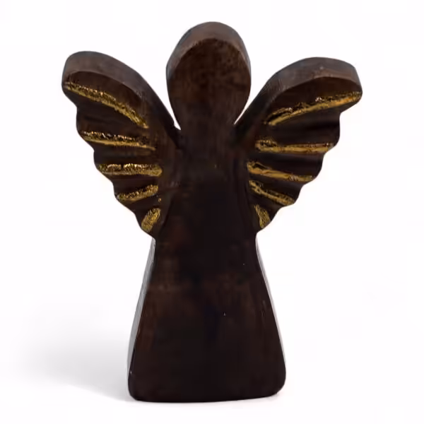 A thoughtful gift or a calming keepsake, this hand-carved mango wood angel is finished with shimmering gold wings, bringing a touch of warmth and elegance to any home.