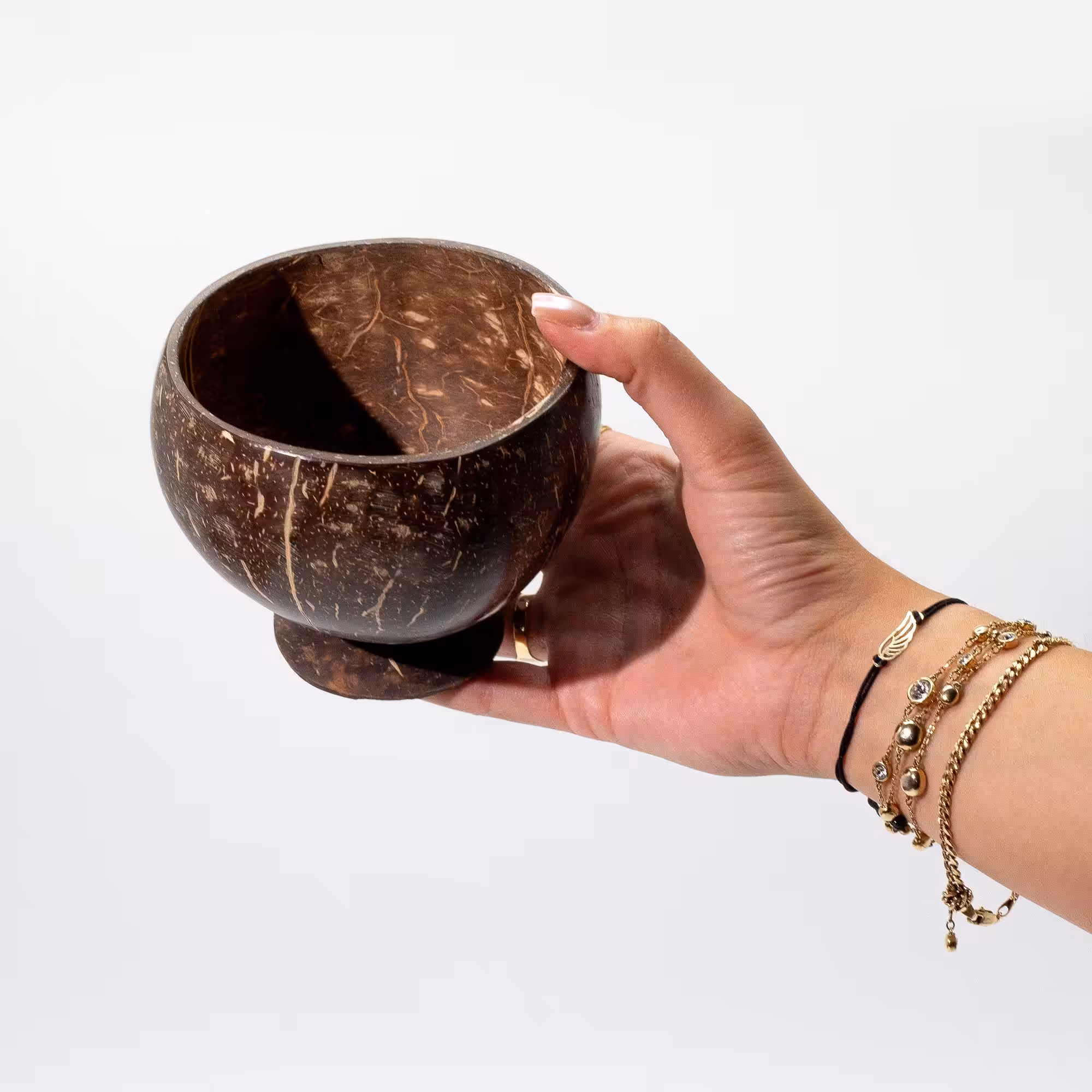 Bring a touch of nature into your home with this beautifully polished coconut bowl, handmade in Indonesia. Each bowl sits on a matching wooden stand, giving it a stable base and a stylish, natural look.