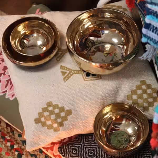 This singing bowl is made from high-quality bell metal, which not only contributes to its stunning shine but also enhances the sound quality. When played, it produces a rich, resonant tone that can aid in relaxation and mindfulness practices. Its compact size makes it easy to handle, allowing users to integrate it into their daily routines effortlessly, whether during yoga, meditation or other wellness activities.