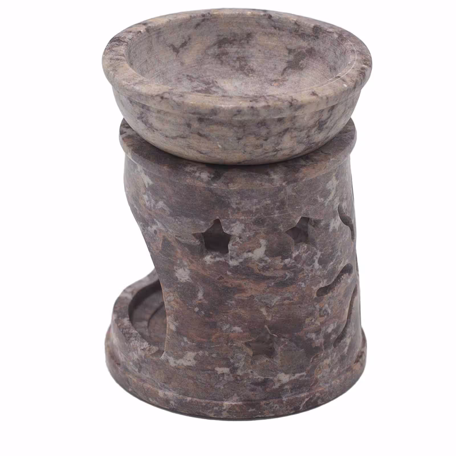 Illuminate your inventory with the Small Soapstone Oil Burner 8cm – Sun & Stars.