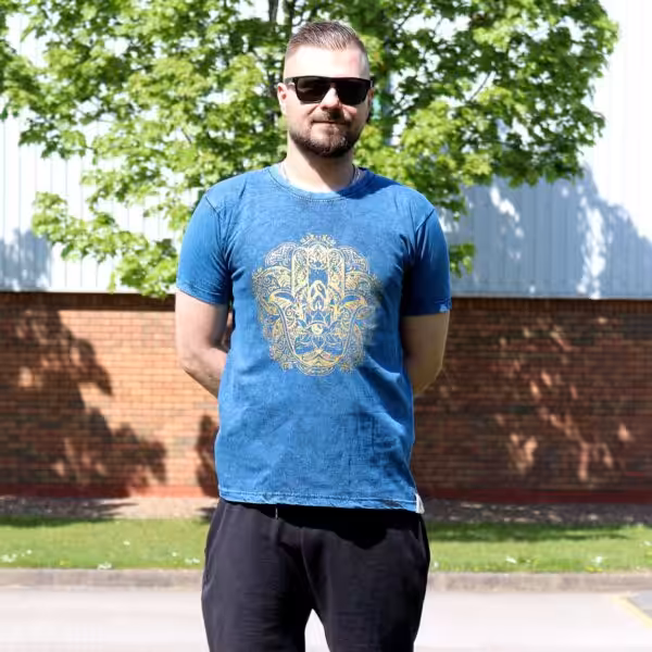 Small Stone Washed T-Shirt – Hamsa – Blue