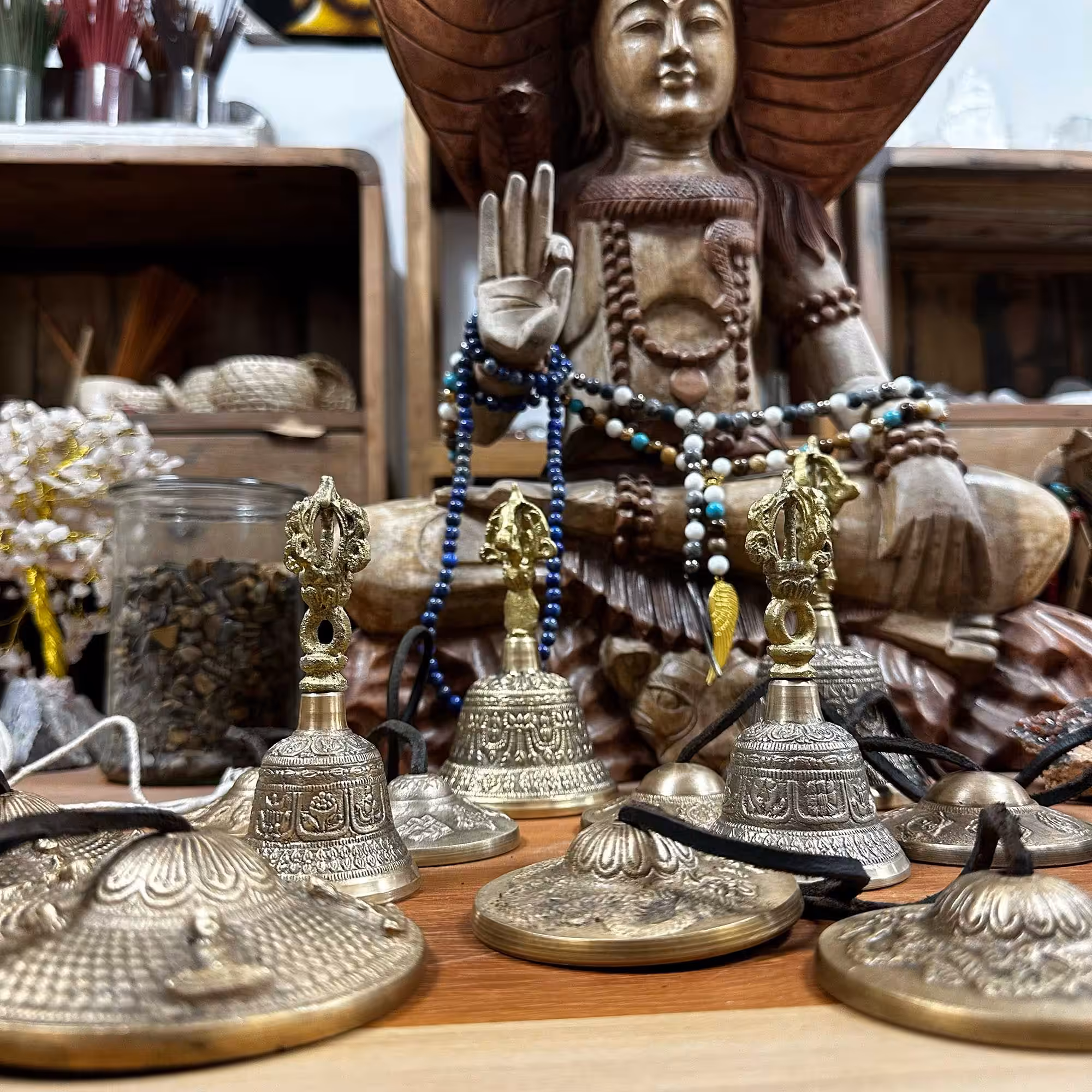 Perfect for meditation, yoga, energy healingor as a decorative piece. The bell features traditional Tibetan symbols and designs, adding an aesthetic element to the spiritual space.