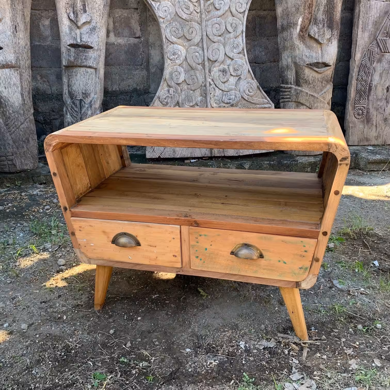 This beautiful piece of furniture has been hand-made in Bali using mostly upcycled teak wood from retired fishing boats.