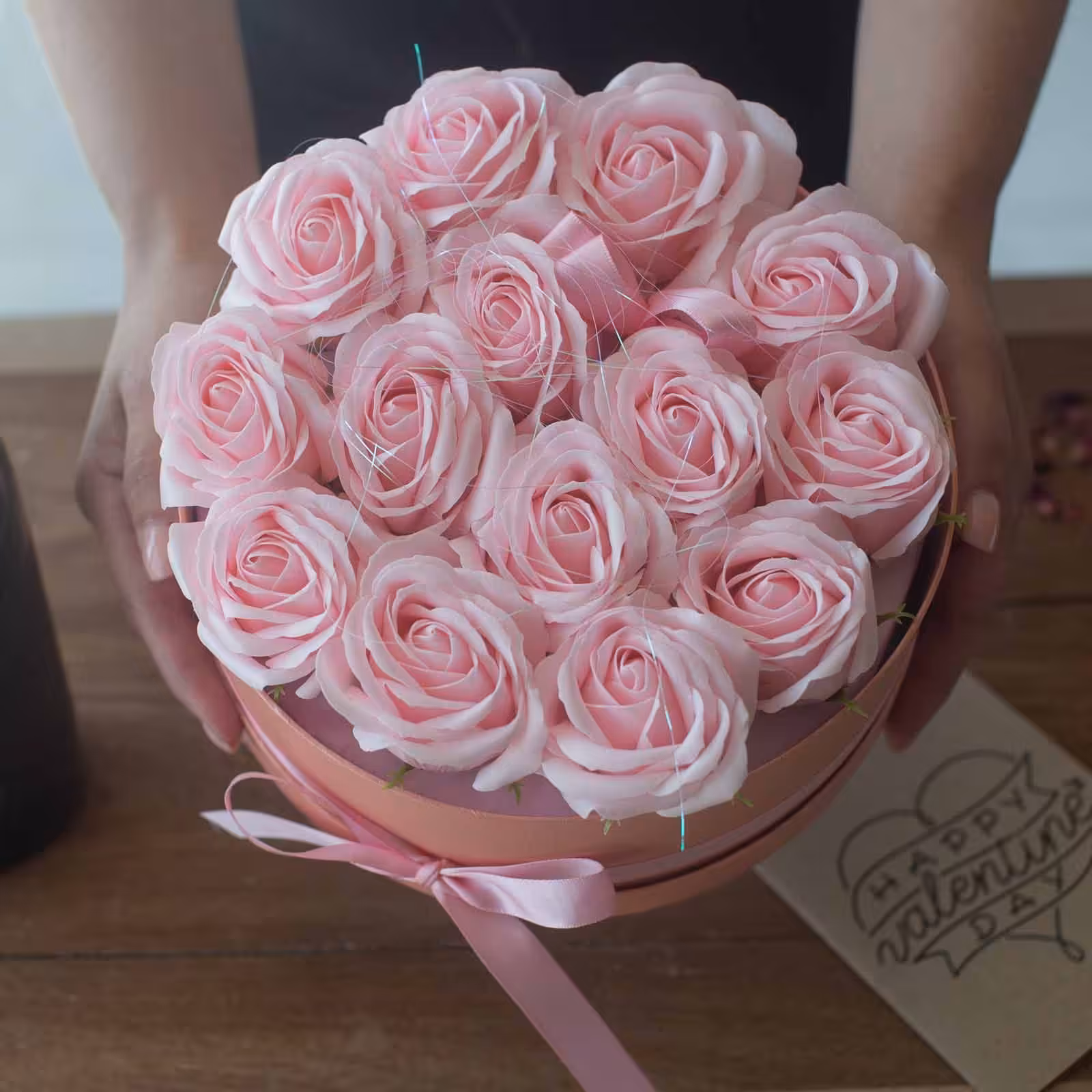 Soap Flower Gift Bouquet – 13 Pink Roses – Heart