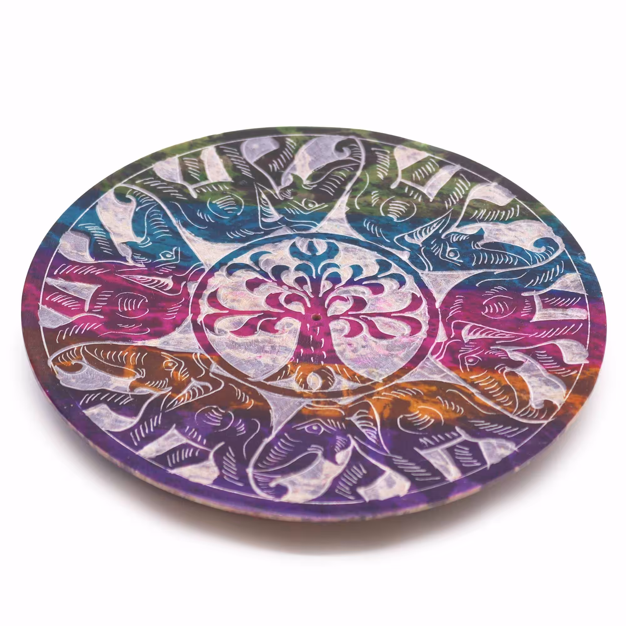 Soapstone Disc Incense Holder – 6 Lucky Elephants