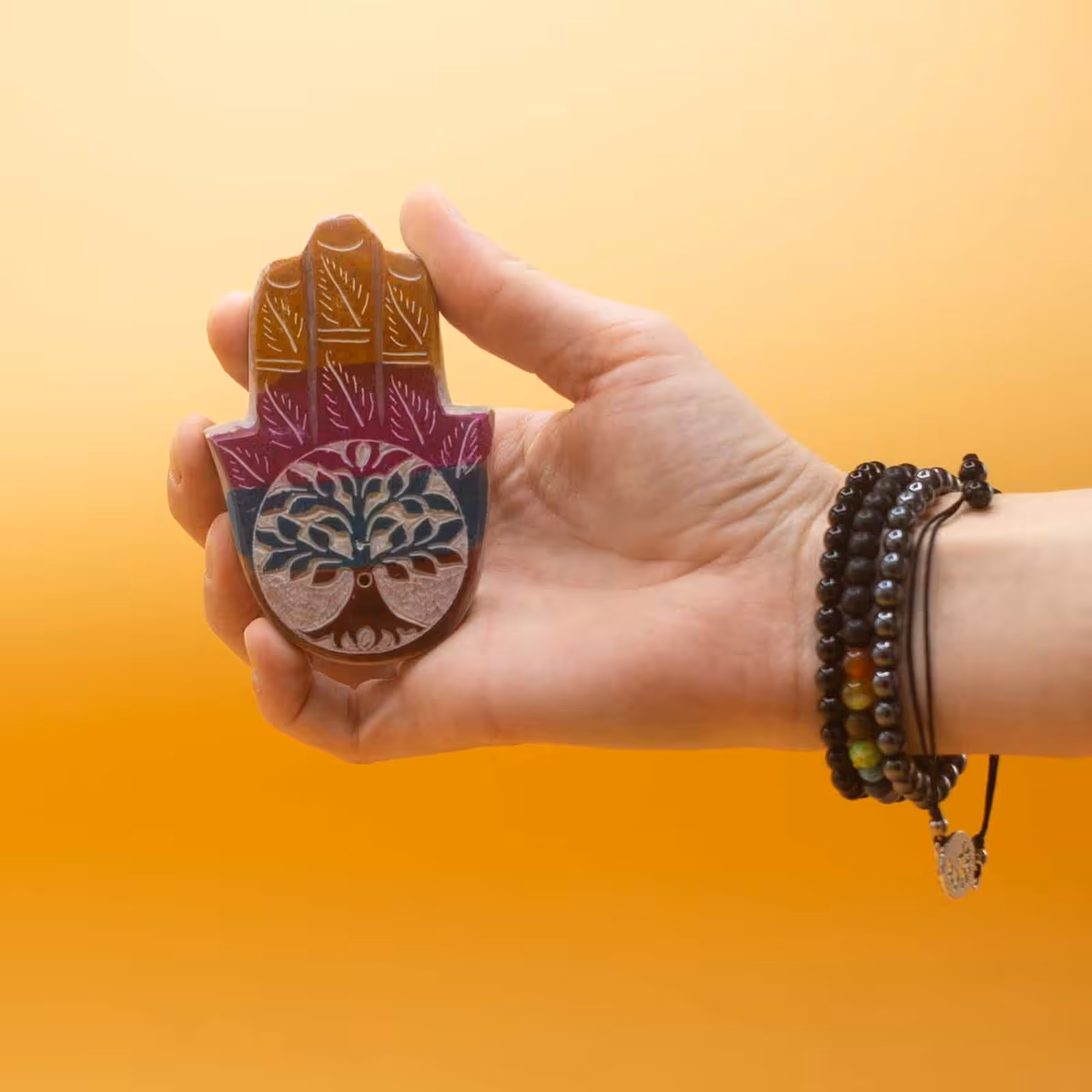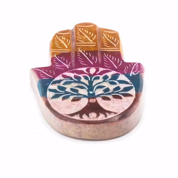 Soapstone Hamsa Incense Holder – adorned with the Tree of Life design, a symbol of profound spiritual significance and vitality. This exquisite incense holder seamlessly blends artistry and spirituality, making it an ideal addition to enhance your meditation and relaxation rituals while adding an air of elegance to your space.