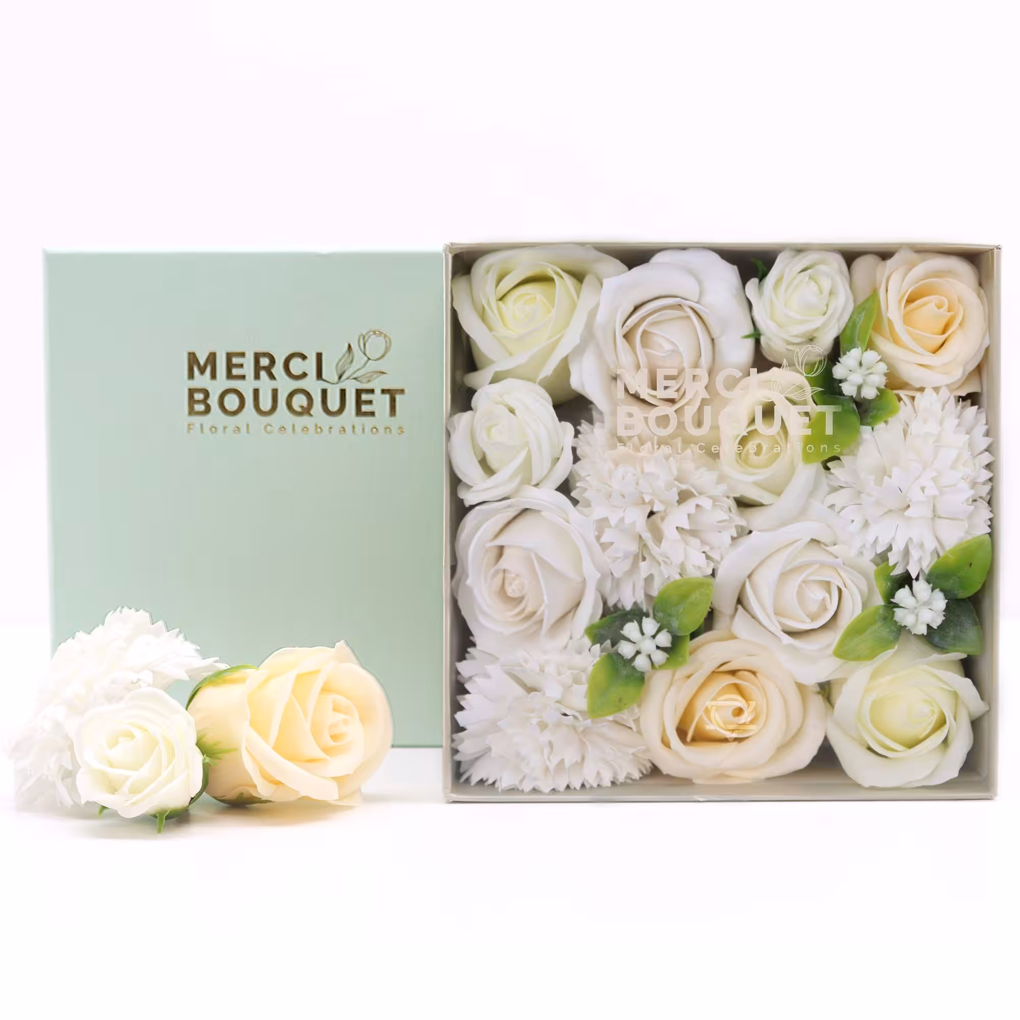 Soap Flower Gift Round Box – Wedding Blessings – White & Ivory