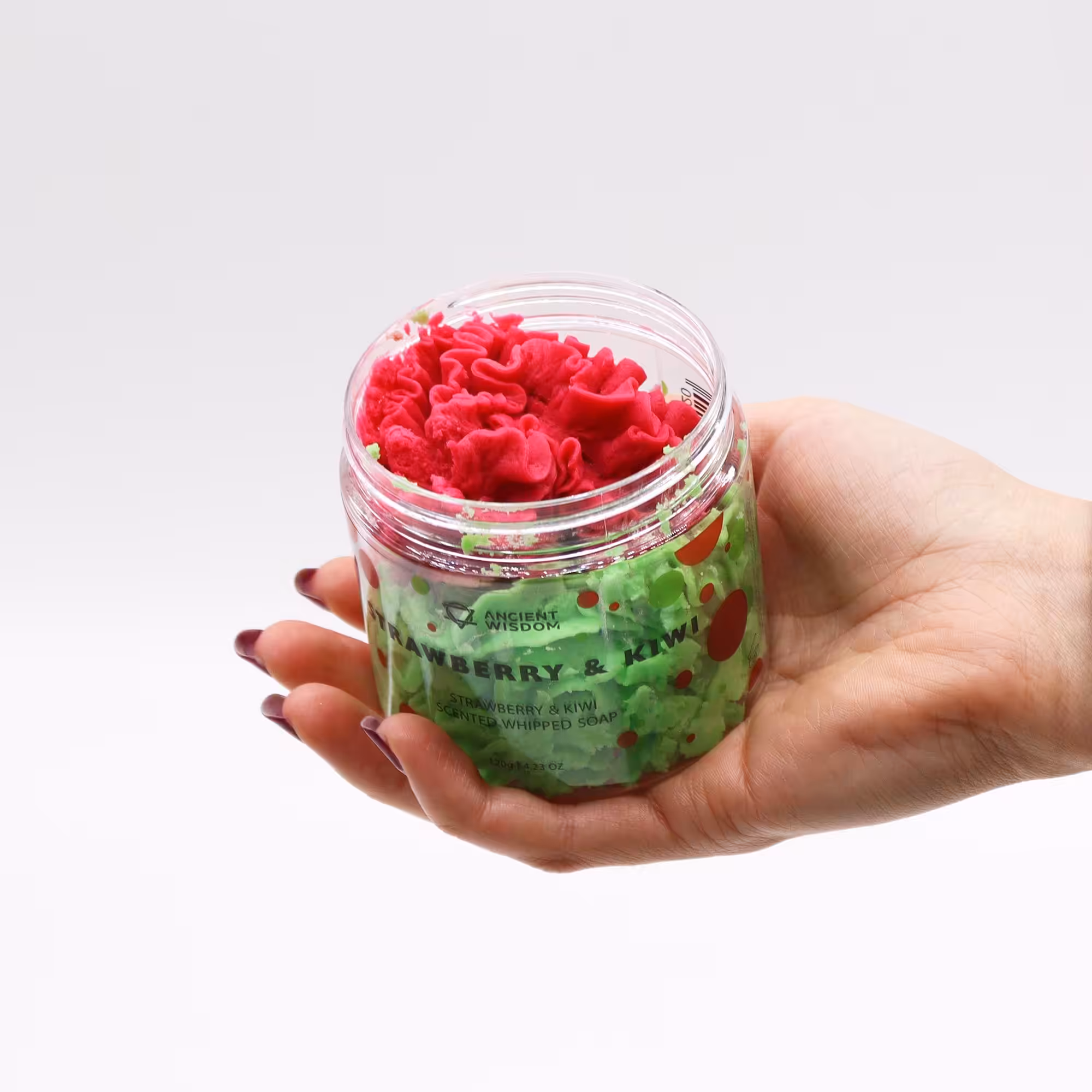 Delightful Fruit Twister Whipped Soap – Indulge in the fresh and fruity scent of strawberries and kiwi while treating your skin to a luxurious bathing experience.