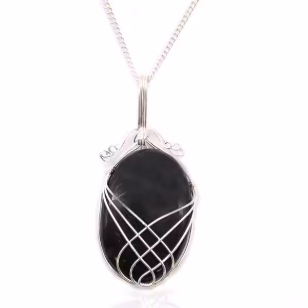 What impresses in this necklace is, above all, the deep, uniform black that distinguishes each onyx. It is called a "stone of inner strength" because its energy strengthens perseverance, obstinacy and consistency in pursuing the set goals. This beautiful stone is enclosed in a delicate frame with swirl.