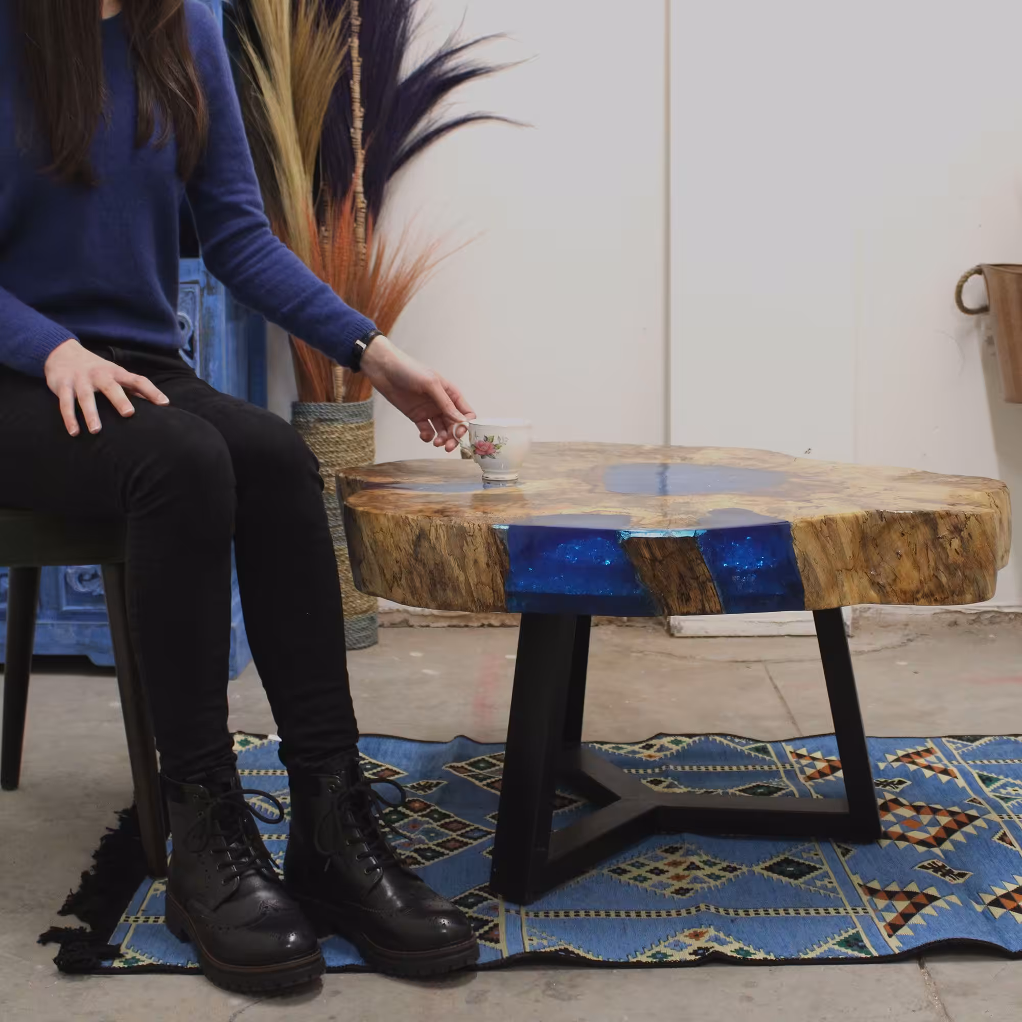 Tamarind and Resin Coffee Table – Sky Blue