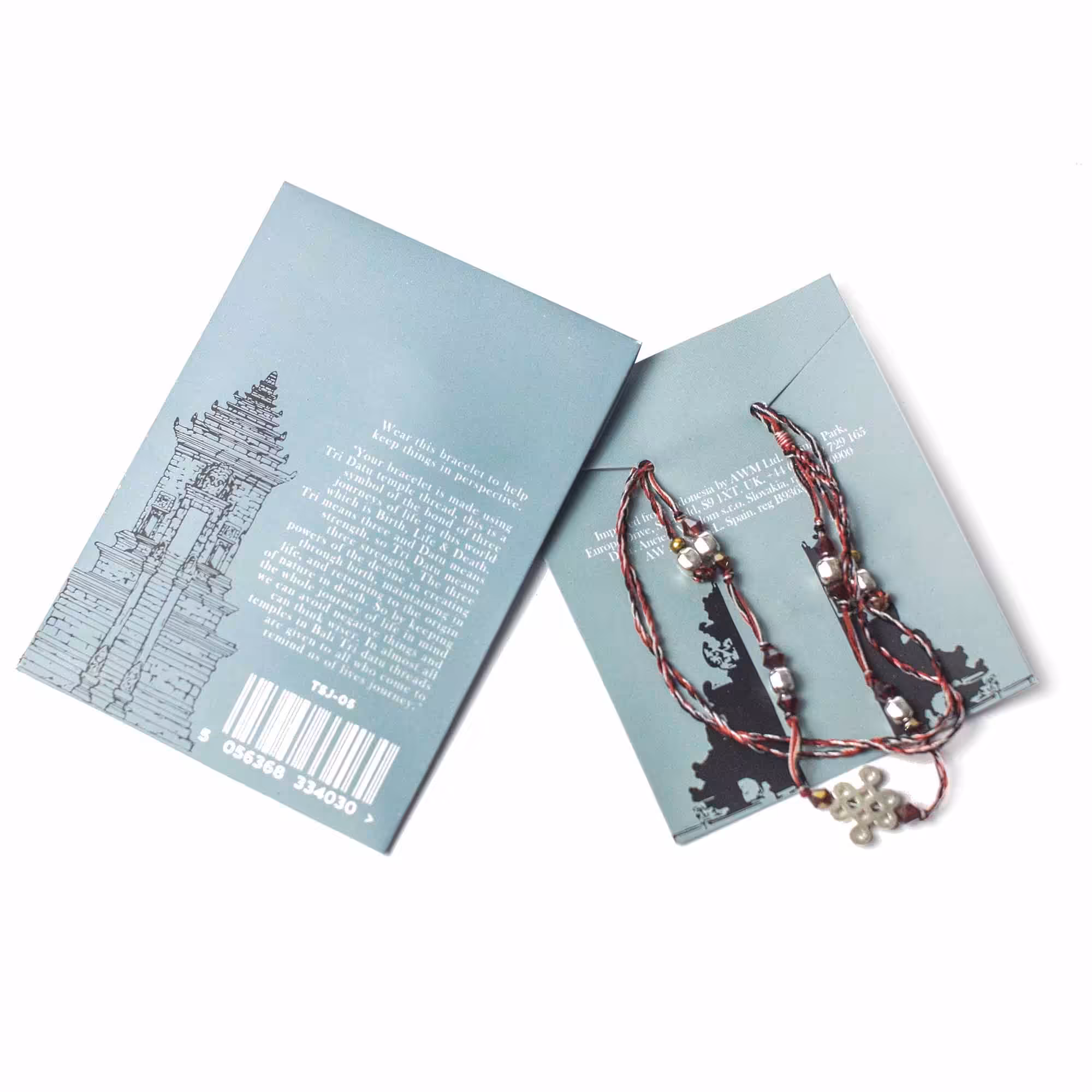 Each Temple String Bracelet – Journey of Life is packed in a blue paper bag with a short description of its intention: