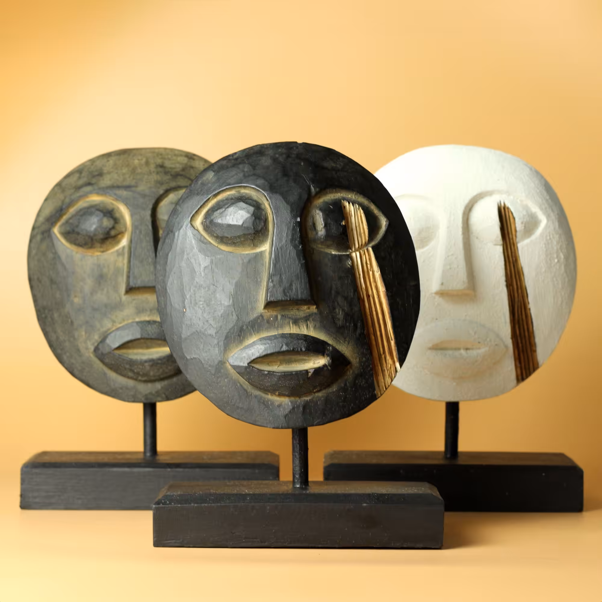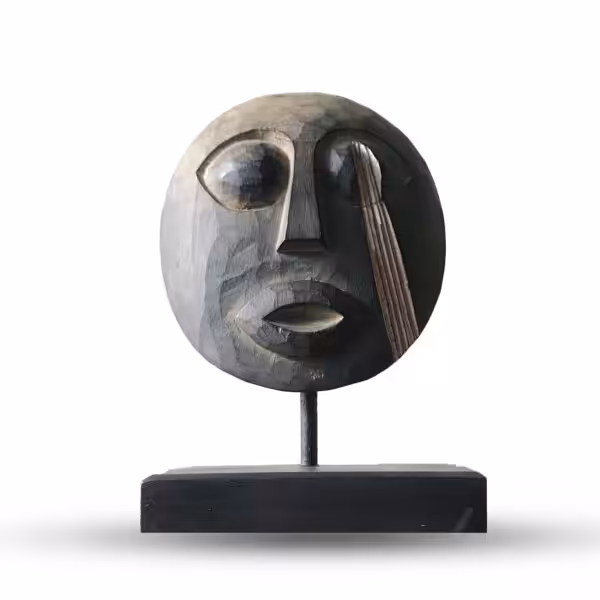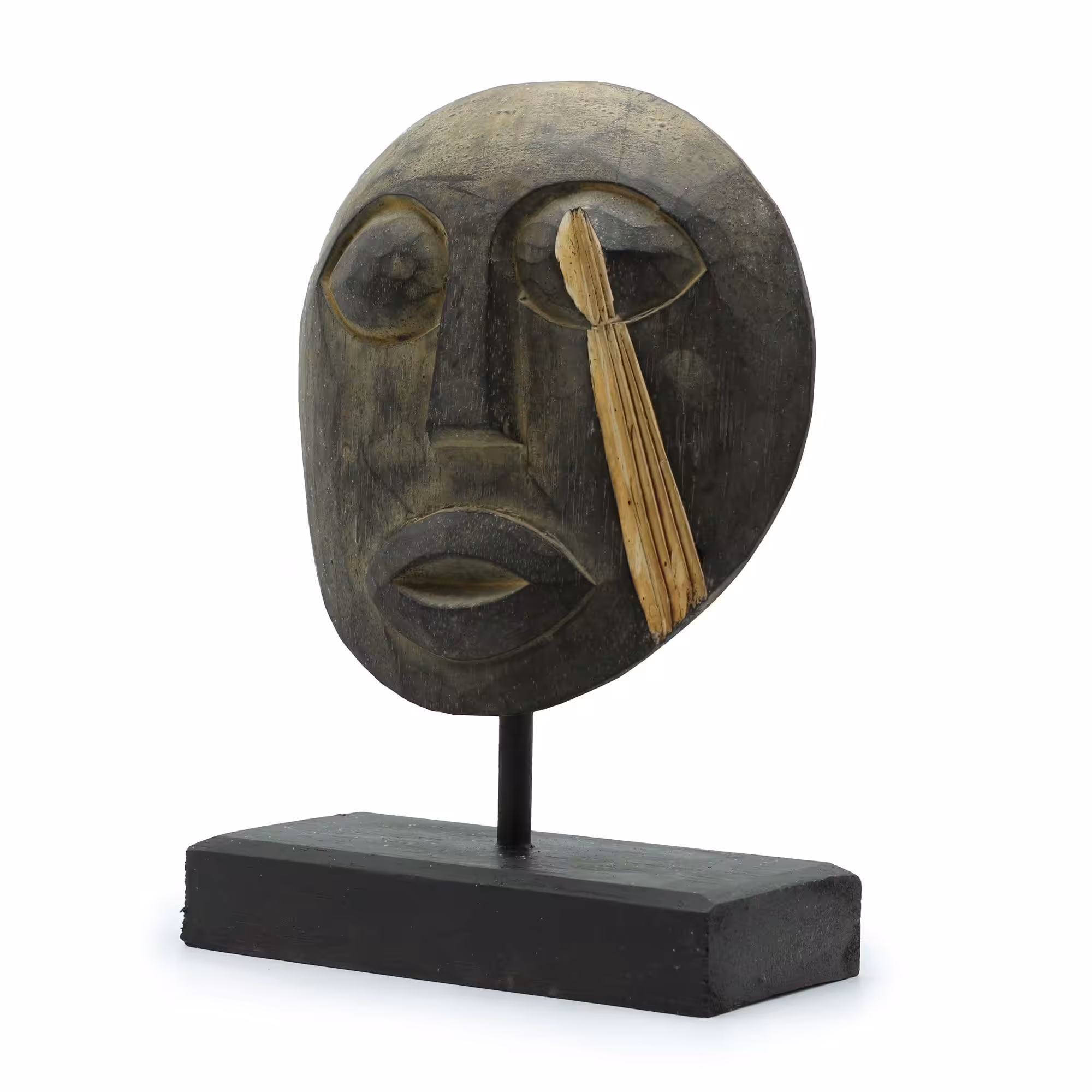 Handcrafted in Indonesia from premium albasia wood, this mask captures the essence of traditional Timor artistry with an antique finish that adds to its timeless appeal.