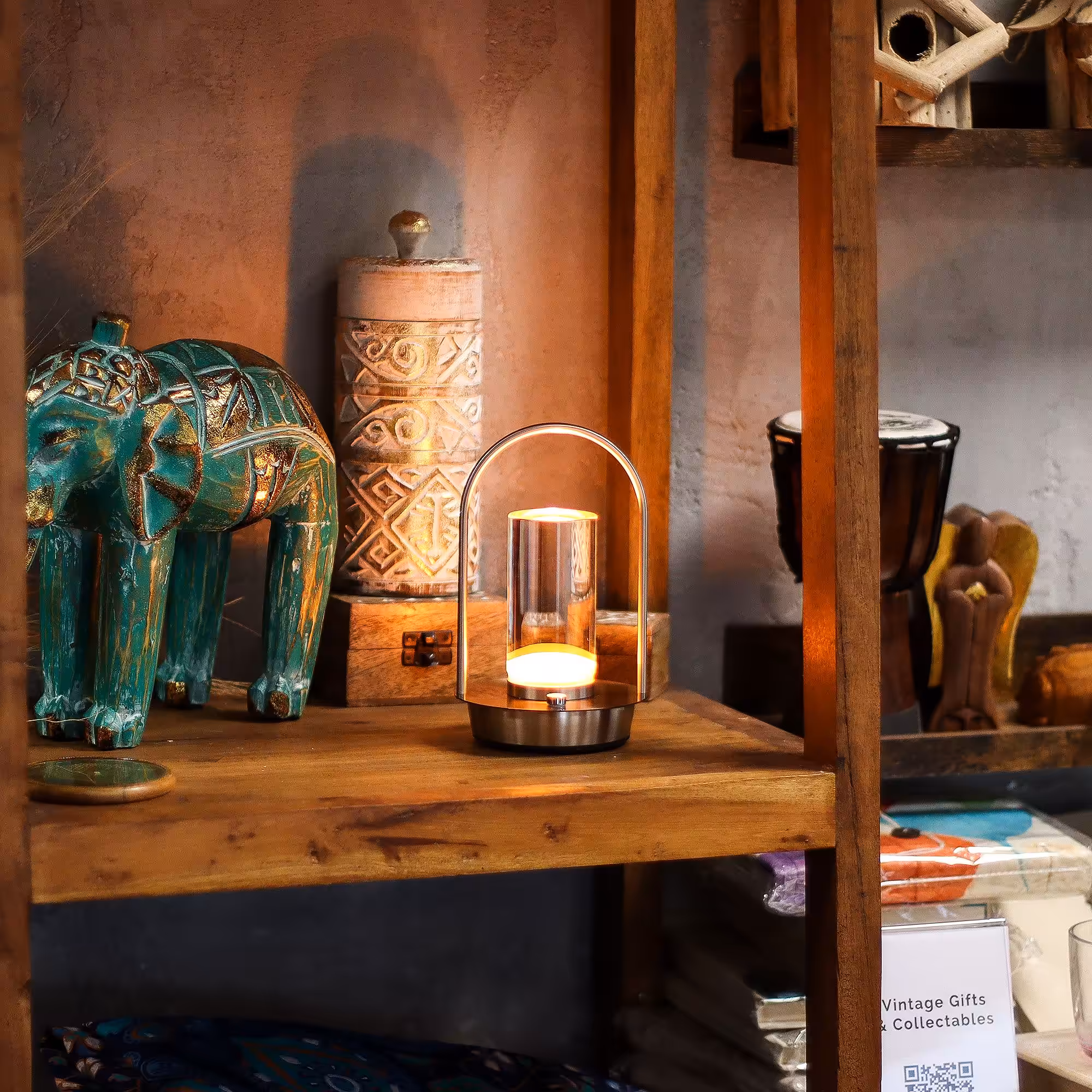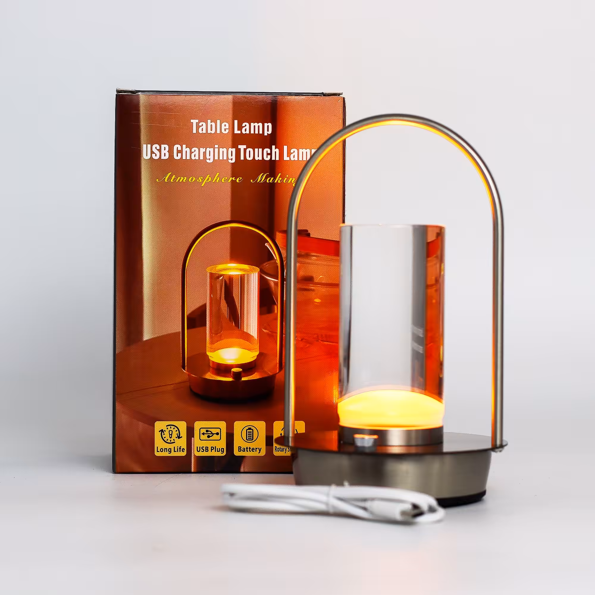 The Crystal Lantern Touch Lamp combines modern functionality with an elegant, lantern-inspired design. Made from metal and glass, it features a transparent glass body that showcases the soft LED illumination, creating a warm and inviting glow.