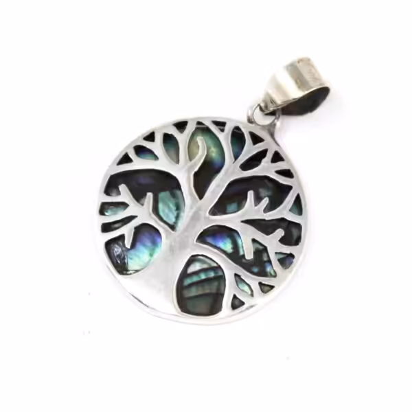 Tree of Life Silver Pendant 22mm – Abalone