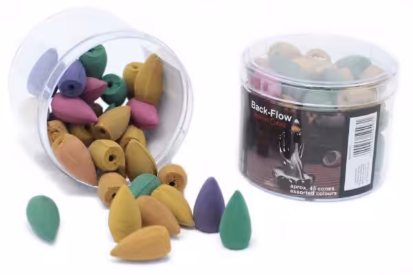Un-fragranced Backflow Incense Cones when they are burned, the smoke flows down the incense tower like a waterfall, creating an unusual and beautiful effect. These cones are only for use with Backflow Incense Burners.