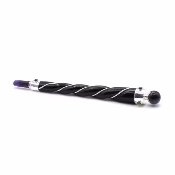 Twisted Healing Wand – Silver Amethyst Sphere