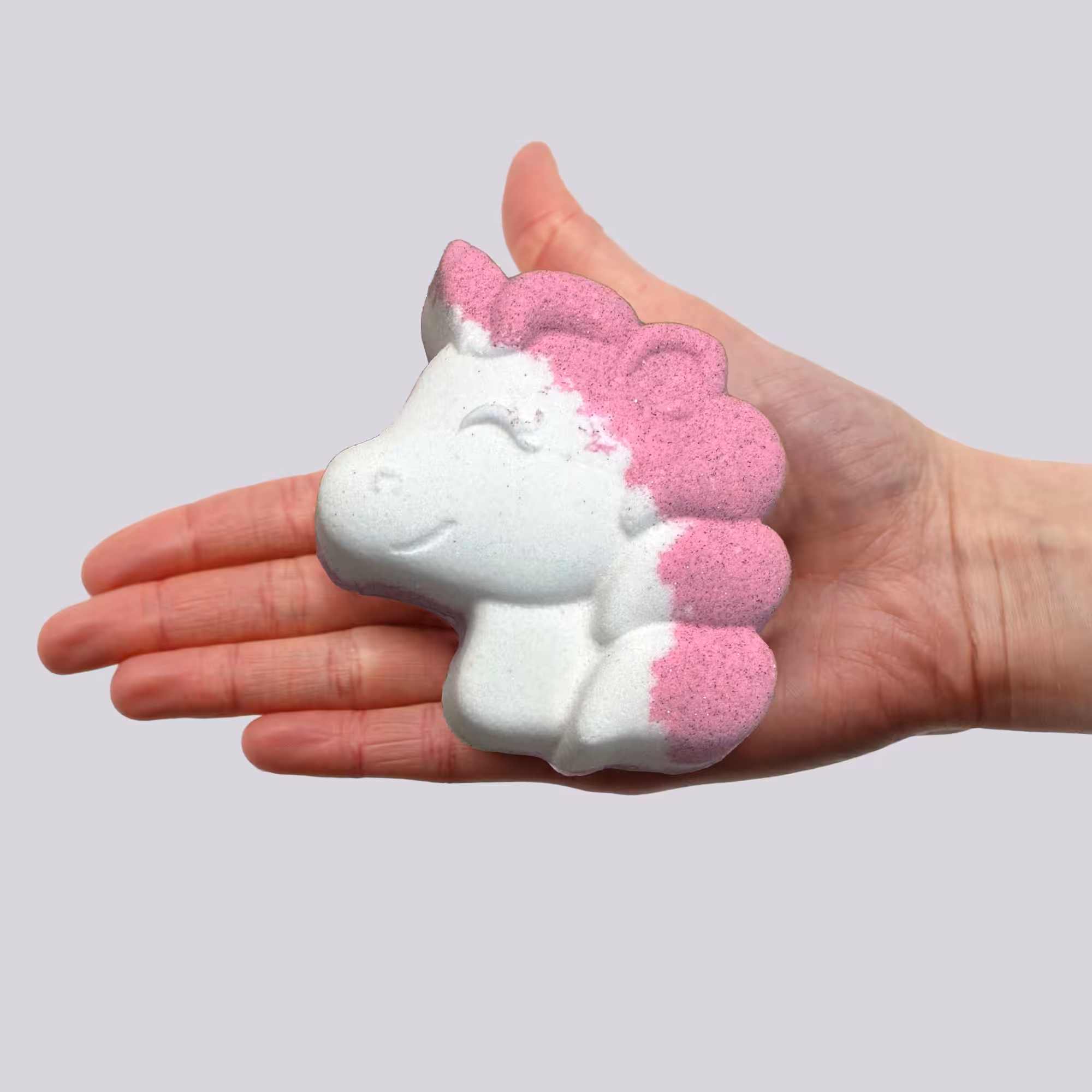 Each bath bomb is meticulously crafted into a magical unicorn shape, bringing a sense of wonder and playfulness to any bathing routine. The intricate details and vibrant colours make these bath bombs visually appealing and irresistible to customers of all ages.