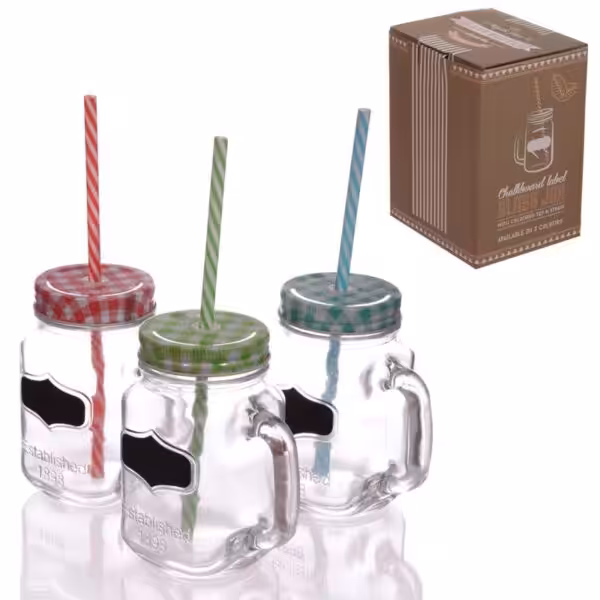 Crafted from durable glass, this vintage-inspired jar features a charming chalkboard surface, allowing you to personalise your drinks or leave sweet messages for guests. Its vibrant green colour adds a pop of fun, while the sturdy handle ensures easy sipping. Whether you’re serving iced tea, cocktails or lemonade, this drinking jar is sure to impress your friends and family.