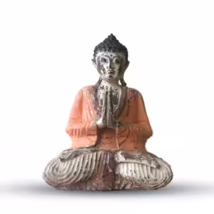 Vintage Orange Hand Carved Buddha Statue – 30cm – Welcome