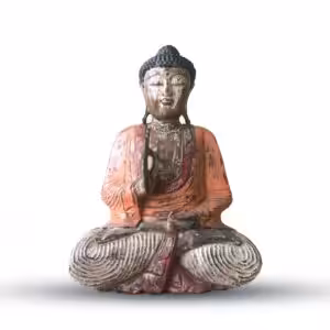 Vintage Orange Hand Carved Buddha Statue – 40cm – Teaching Transmission