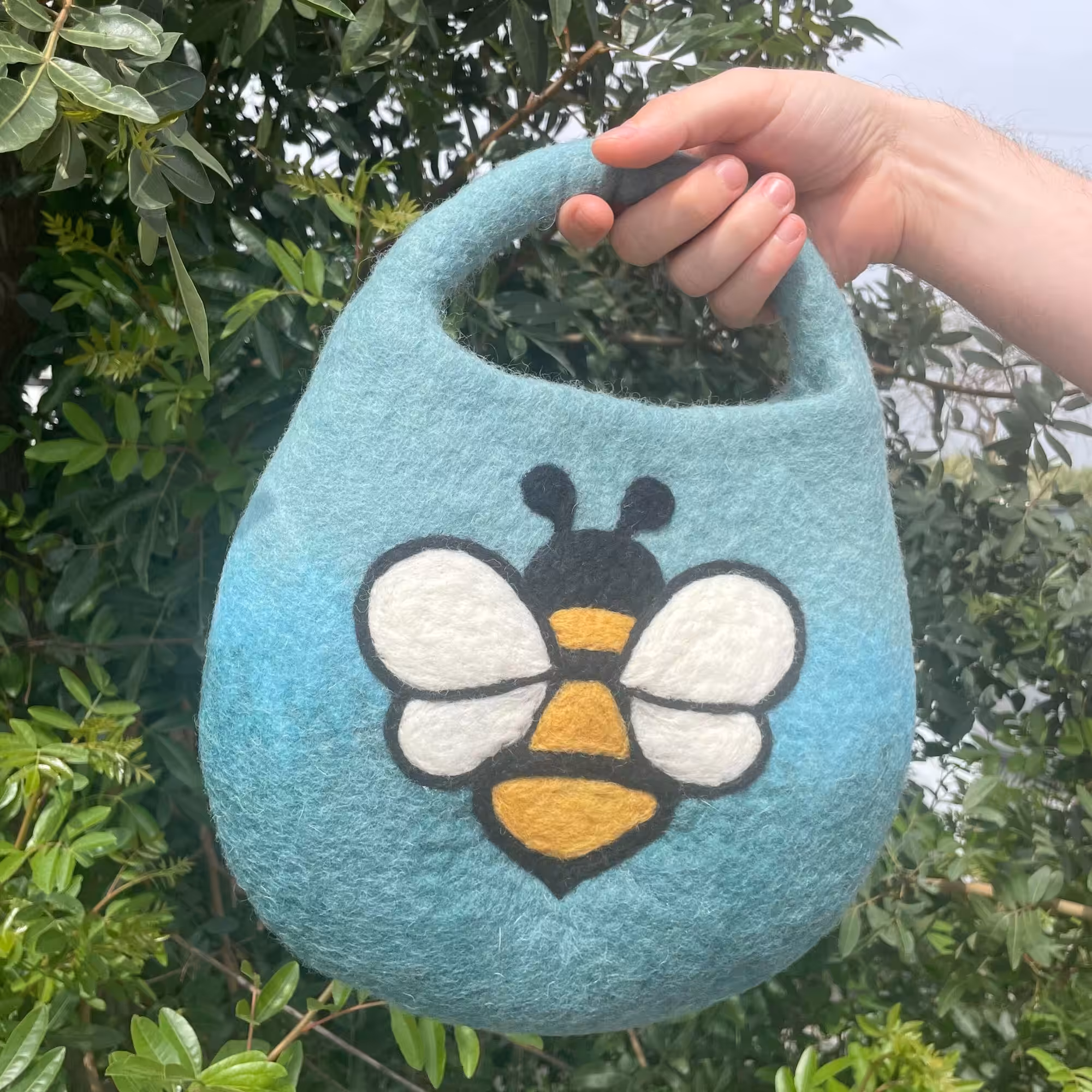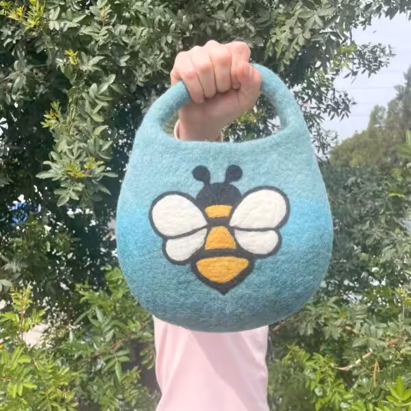 Water Felted Bee Bag – One Handle with Magnet – Blue Green