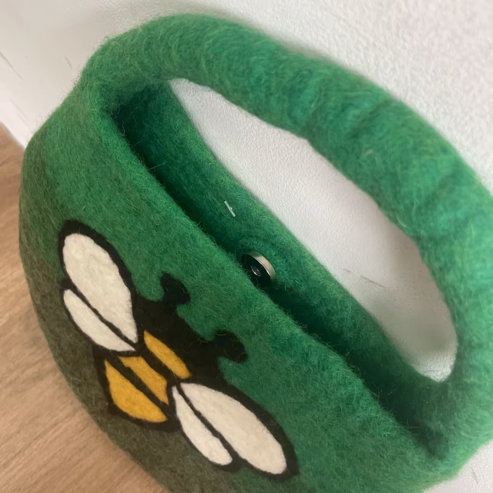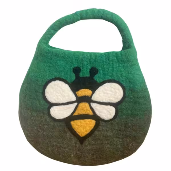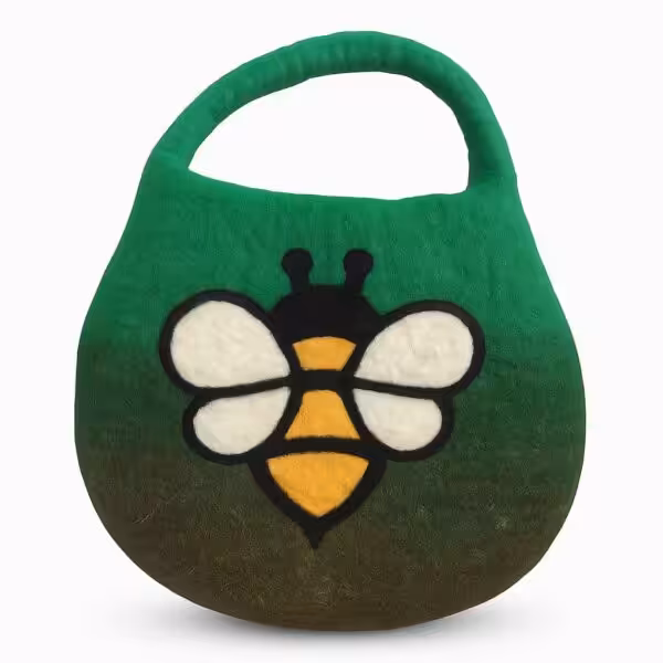 Water Felted Bee Bag – One Handle with Magnet – Garden Greens