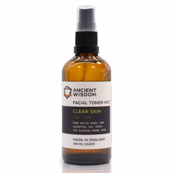 Ancient Wisdom Facial Toner Mist – Pure Witch Hazel and Essential Oil. Let the feeling of calm wash over you with Ancient Wisdom Facial Toner Mist. You can use it to tone skin after cleansing or to refresh and hydrate throughout the day, helping to keep skin in check. Facial Toner Mist is made from pure Witch Hazel and Essential Oil, lovingly made in England in our production in Sheffield.