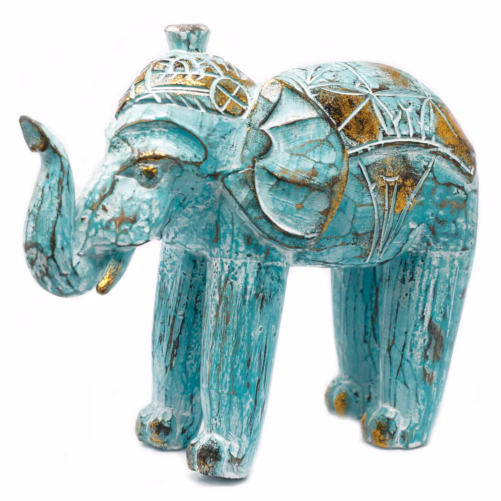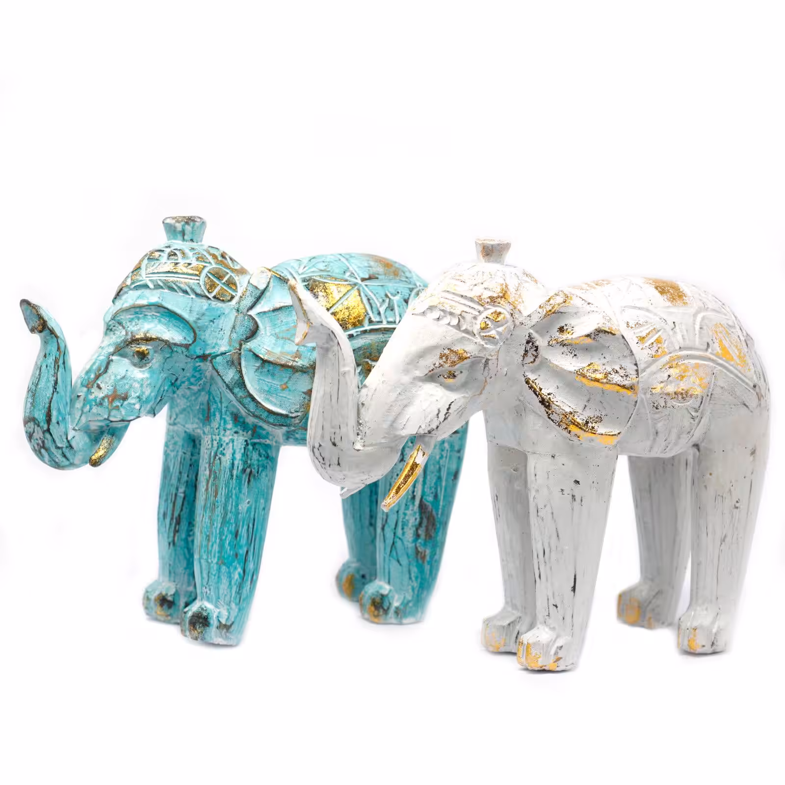 These Elephants have been lightly painted in white and turquoise colours and added a golden glitter to it for Ancient Wisdom.