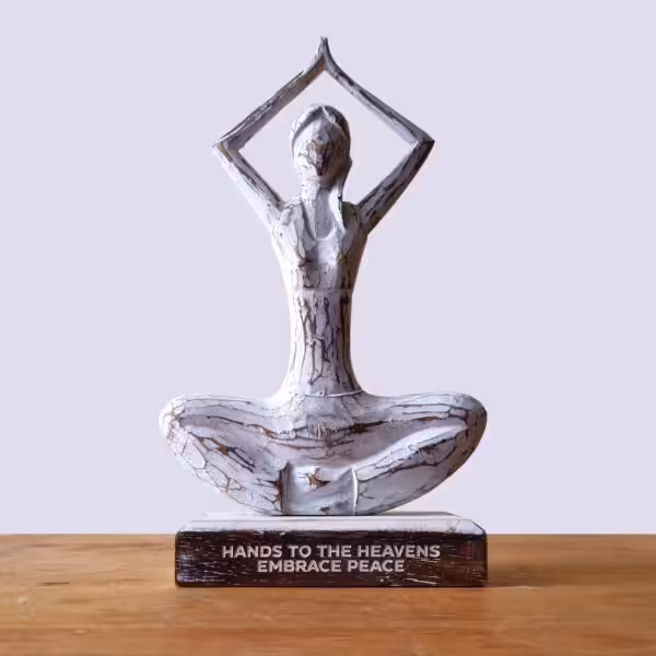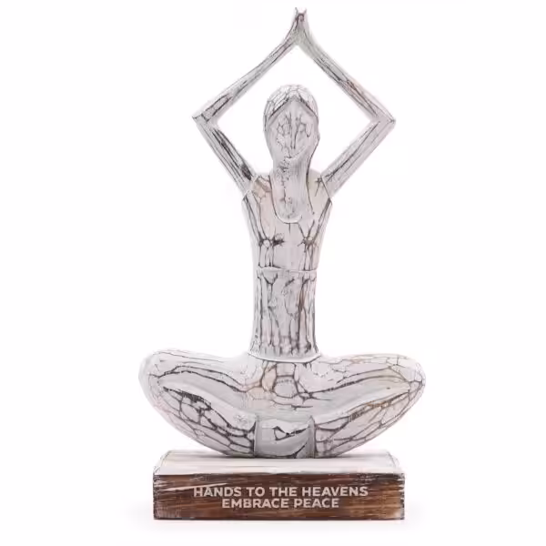 The Wooden Yoga Lady in a whitewash finish beautifully captures the essence of mindfulness and serenity. Perfectly posed in the ‘Hands to the Heavens’ position, this stunning piece from the Wooden Yoga Lady category not only serves as an eye-catching decor item but also as a reminder to embrace peace and tranquility in your daily life.