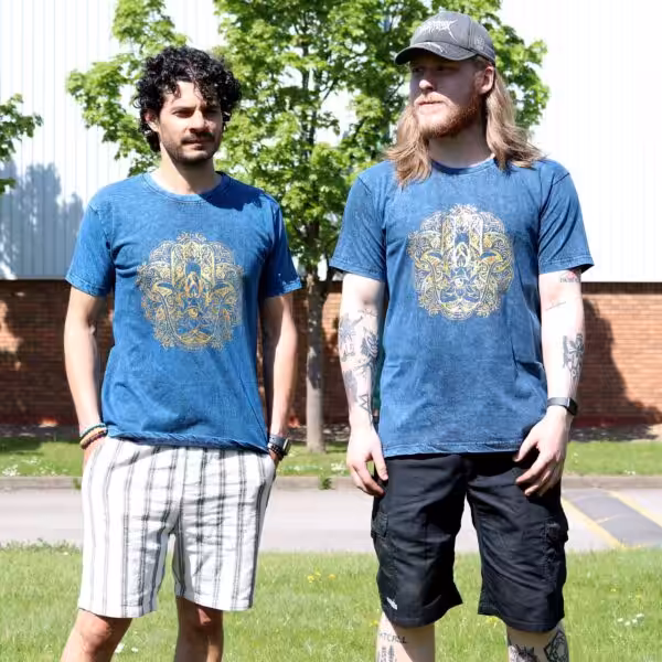 This t-shirt features a striking Hamsa design, symbolising protection and good fortune, which adds a meaningful touch to your wardrobe. The breathable material ensures all-day comfort, while the vibrant blue hue makes it easy to pair with your favourite jeans or shorts. With its durable construction, this t-shirt is designed to withstand regular wear, making it a practical addition to your collection.