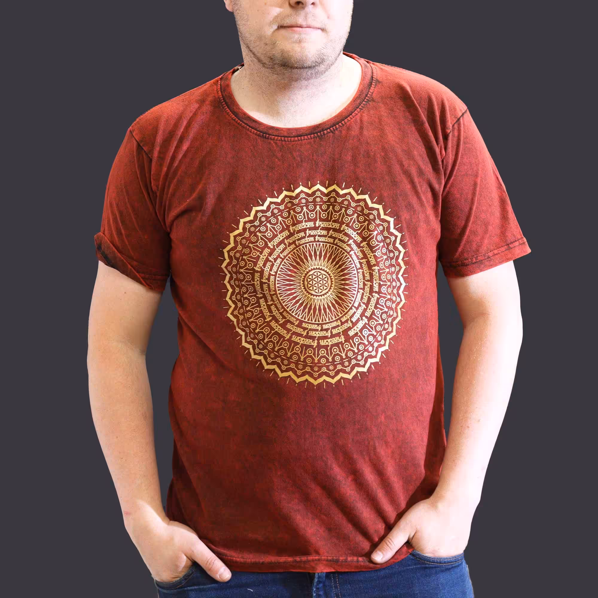 XLarge Stone Washed T-Shirt – Mandala – Maroon