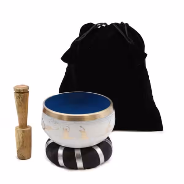 The Yoga Moves Singing Bowl Set in White/Blue, measuring 10.7cm, is an exquisite addition to your meditation practice. Crafted in the traditional Tibetan style, this singing bowl offers a unique way to enhance your spiritual journey, bringing peace and mindfulness into your daily routine. Its harmonious tones create a serene atmosphere, making it ideal for both personal use and group meditation sessions.